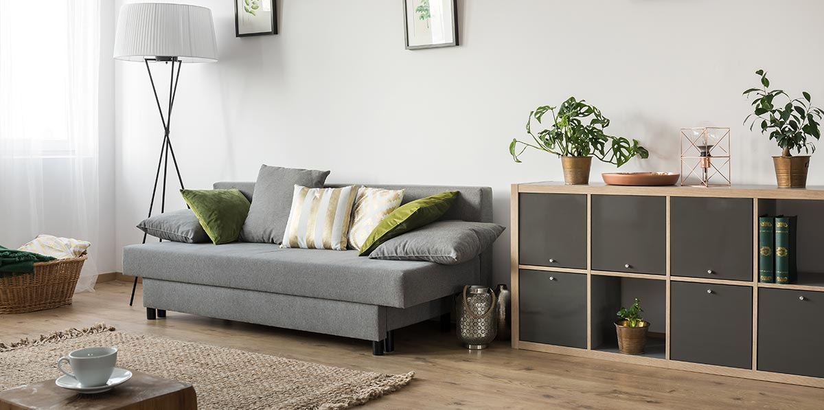 • Walnut Wood finish with Charcoal Fabric upholstery